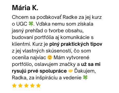 - Nevedela som, ako si budovať svoj osobný UGC brand a tak mi unikalo množstvo spoluprác.